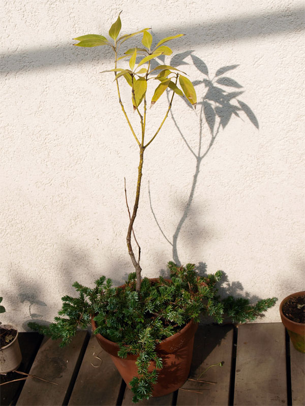 ★写真の株は、数年前、すぐに踏まれそうなところで芽を出していたのを持ち帰り、育ててきたものです。2、3年を新宿のマンションのベランダで、その後、世田谷区に移して現在に至ります。